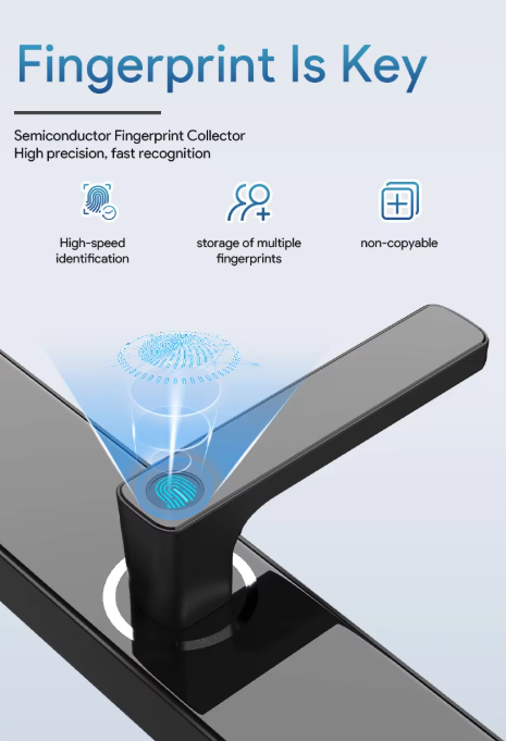 Fechadura Inteligente com Segurança, Leitor Biométrico de Impressão Digital, Fechadura Digital com Teclado, Ferrolho Automático Inteligente para Porta de Entrada